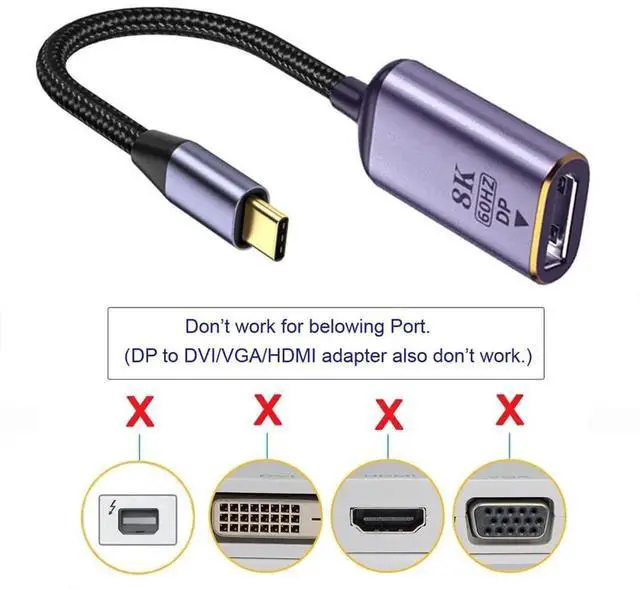 Gold-plated USB-C to DP monitor cable Video 8K,4K UHD 2160p, HD 1080p, connectors, tinned copper wire, durable Nylon Braided, aluminum slim case, all of them ensure a strength connectivity between devices;