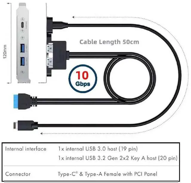 Panel-Mounting: A great solution to continuing your USB2.0 Type-C connection to your cabinet device. Connect your cable to the panel mount to continue your USB deivce. With 12cm standard pcie bracket, Cable Length: 50cm