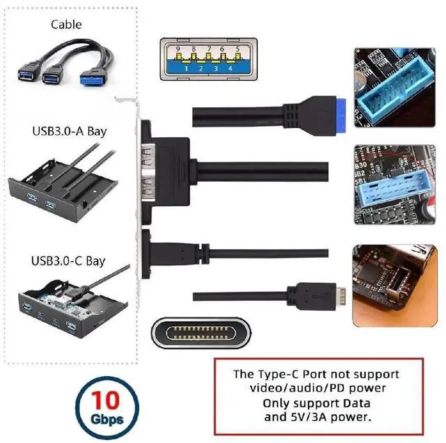 With this cable, you can directly connector motherboard 20pin socket, converted to dual usb3.0 & Type-C socket.The Type-C/ Type-A port supports 5Gbps USB Data from SSD/HDD