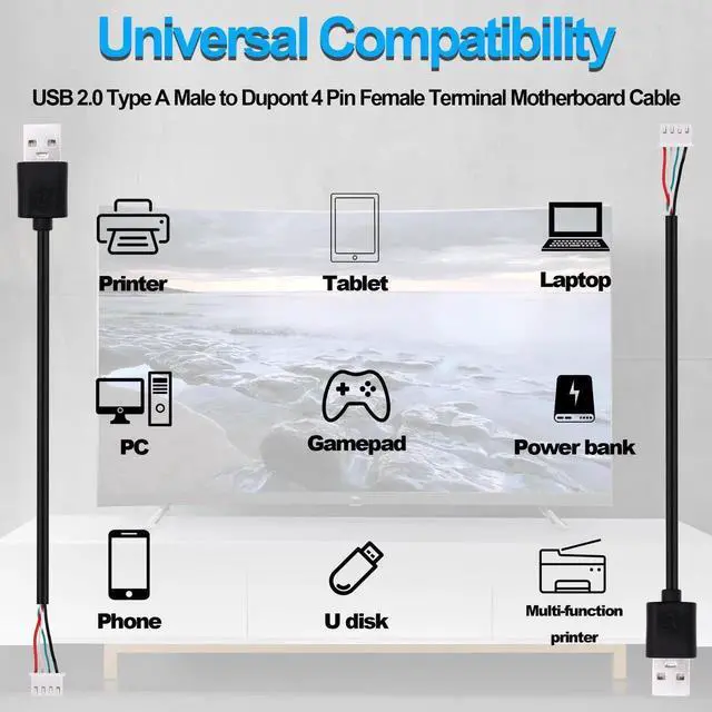 USB tyep A to XH2.54 small 4Pin terminal cable is a USB A 2.0 male plug with a 4Pin XH2.54 female terminal, can be easily connect with USB device and docking with the 4pin male socket of the upper computer motherboard.