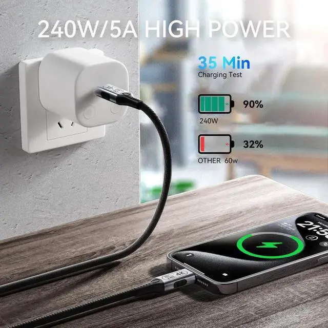 This usb c to usb c cable is super versatile. It's both a usb c cable fast charging option and a 240w usb-c charge cable. With advanced PD3.1 and QC3.1, it charges high-power laptops and daily mobiles at record speed, keeping them ready.