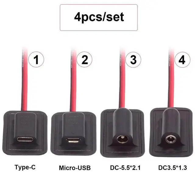 4pcs different cable in the package for DIY OEM use. Type-C & Micro-USB & DC 5.5x2.1mm & DC 3.5*1.35mm; You need to solder the cable yourself.