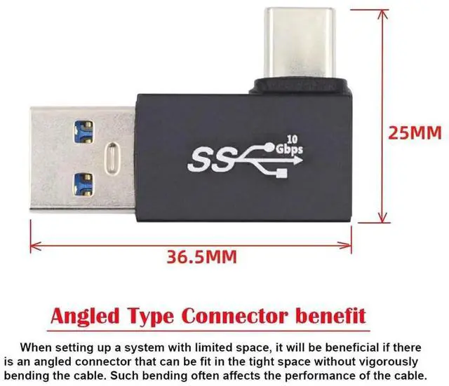 JAENFONG Left Angled 90 Degree USB3.0 Type A Male to USB 3.1 Type C Male Data 10Gbps Charge Adapter for Phone Laptop