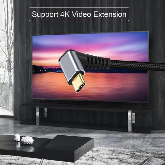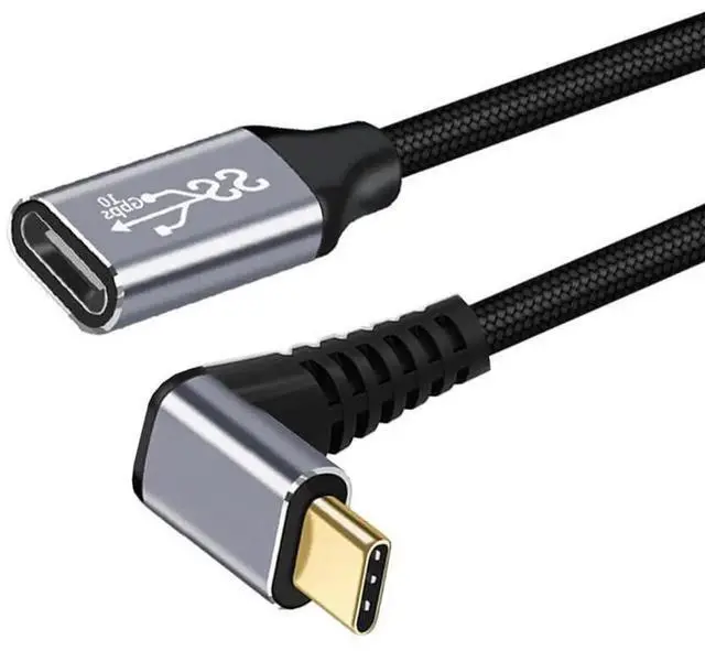 JAENFONG Down & Up Angled USB-C USB 3.1 Type C Male to Female Extension Data Cable 10Gbps 100W with Sleeve for Laptop 3.0m