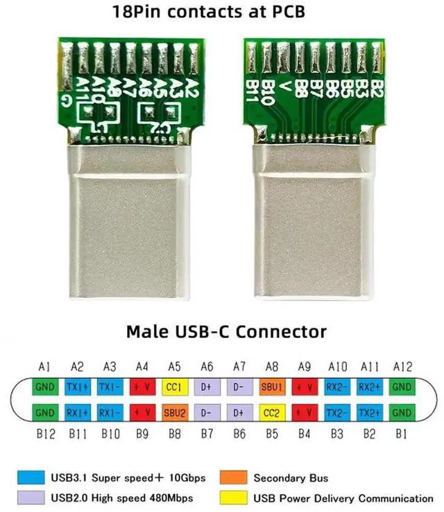 Attached with PC Board, The PCB end is 18pin pinout for Type-C 10Gbps Data and 65W Power.