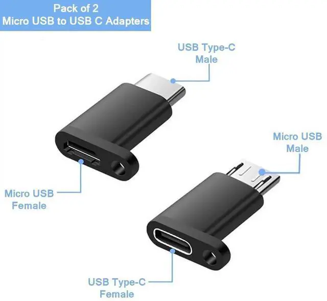 USB C Female to Micro USB Male Adapter is suitable for older Android phones, tablets and other devices with a micro port so you can use a newer USB C cable to charge them or sync datas.