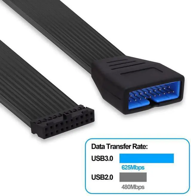 Compact USB 3.0 motherboard 19/20 pin male to female cable is very convenient to carry around and easier to deal with dust and avoid overheating,black flat strip wire is more durable and reliable than a single crimped wire, provides you stable signal and data transmission