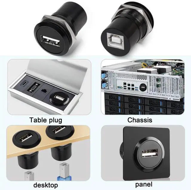 [Easy Installation]USB 2.0 socket to USB B socket round adapter. Is a reinforced and easy to install connection system suitable for installation in equipment cabinets, equipment panel, wall, desktop, floor plug.