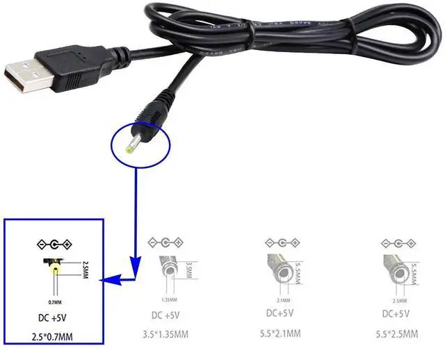 Features:USB 2.0 A Male to DC 2.5x0.7mm Male 5 Volt DC Barrel Power Jack Charging Cable