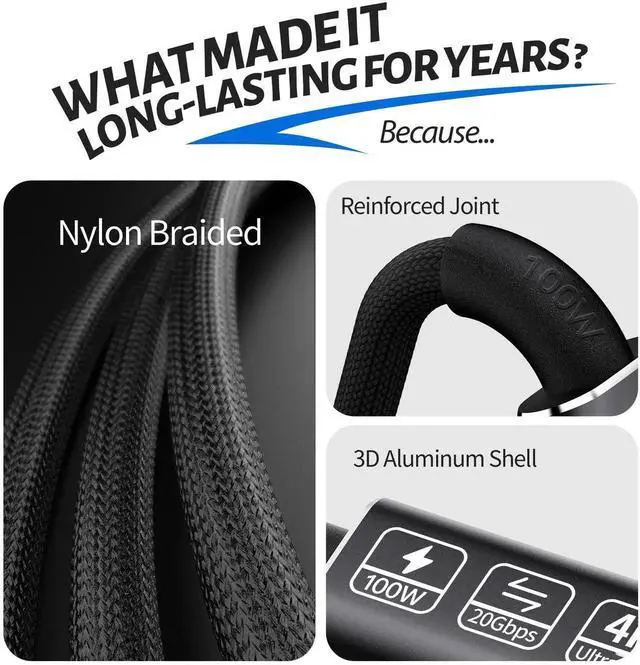 2024 Latest Version usb type c extra long data cable 16.4ft:Here are four reasons to choose the USB C to USB C cable;1:This USB C data transfer cable can meet your ultra-fast data transfer needs. 2: It supports 4K@60Hz HD video output. 3: In addition, the USB C data cable provides super-fast data syncing at a maximum speed of 20Gbps. 4: We hold a product design patent that is exclusively ours, with no other manufacturers having an identical product