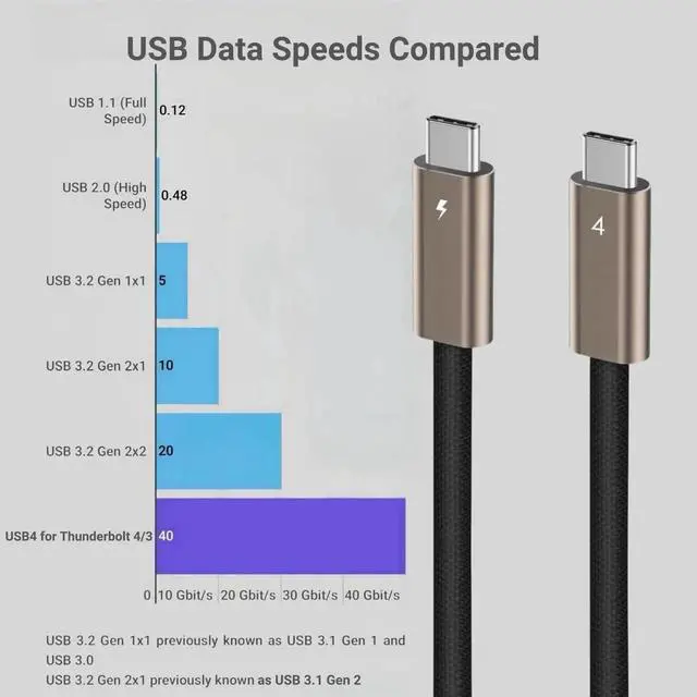 Support USB Version: USB4 Gen3 Cable for Thunderbolt 4/3, USB4 Gen2, SuperSpeed+ USB 20Gbps, USB 10Gbps, USB 5Gbps, USB3.2 Gen2*2, USB3.2 Gen2, USB3.2 Gen1, USB3.1 Gen2, USB3.1 Gen1, USB3.0, USB2.0, etc
