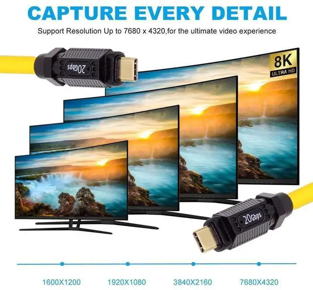 8K/5K Ultra HD Video Output: This USB4 Cable enables to connect from your USB4 or thunderbolt3/4 Port equipped Devices to your USB-C Monitors, It supports Single 8K@60hz, 5K@60Hz or 4K@60Hz max. video Resolution in your external displays.(please make sure your monitor's Type-c port support DP Alternate Mode for Video.)