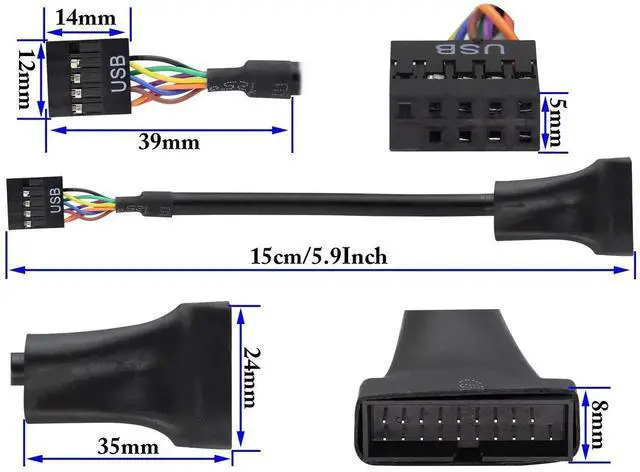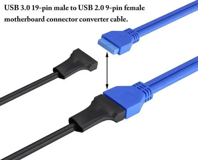 USB3.0 20/19Pin male interface to USB2.0 9Pin female interface motherboard connector,allowing the new USB3.0 20Pin motherboard to be connected to the old USB2.0 devices,such as the optical drive panel and the floppy drive panel.