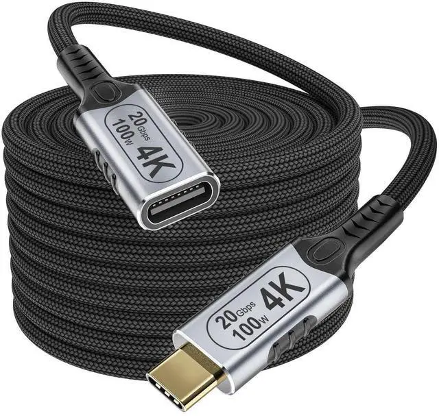 JAENFONG USB c Extension Cable 16.5ft/5M,USB 3.2 Extension Cable Long, USB c Extension Cable 20gbps,100w USB-c Extension Cable PD Fast Charging,Male to Female 4k Video Extender Braided Data Cord