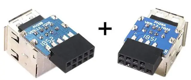 • 2pcs 9Pin/10Pin Motherboard Female Header to Dual USB 2.0 Female Adapter Vertical Type