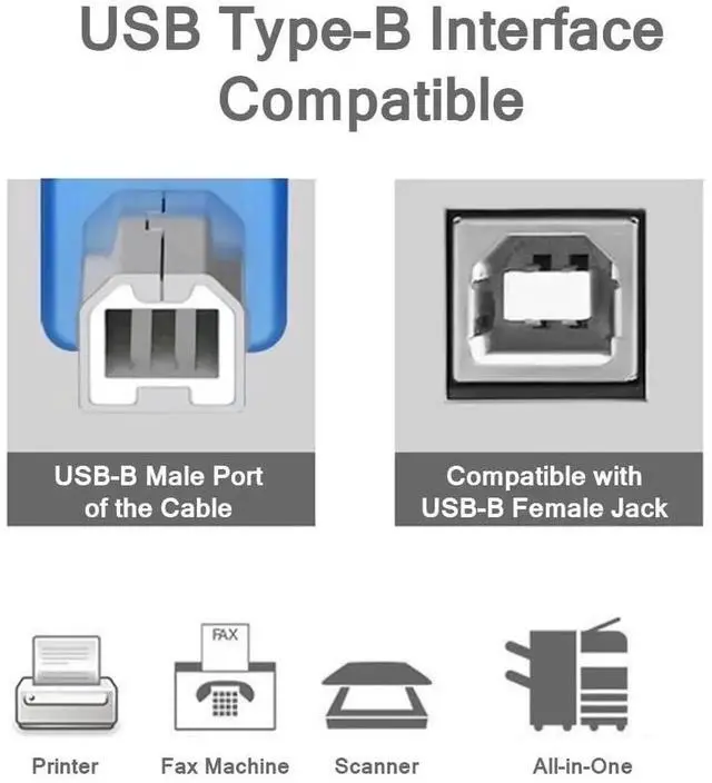 [Fast Sync]USB A to USB B Cable is USB 2.0 design which transfer speed up to 480mbps, quickerly to print anything you want. Not recommanded to use it for hard drive as the files will be much bigger than print things.