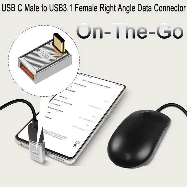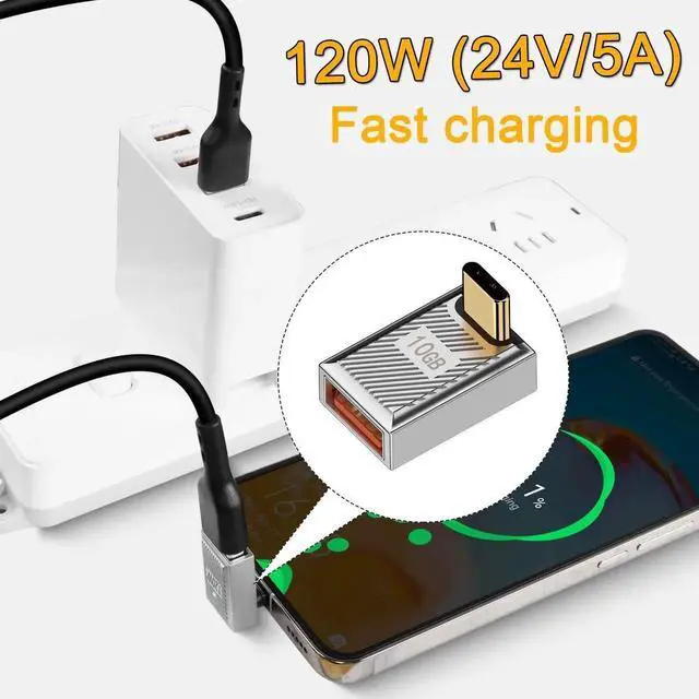 [PD120W 10Gbps]USB Type C to USB 3.1 90 degree right angle Data adapter. External USB flash drive, file copy rate up to 10Gbps, also supports 120W (24V/5A) fast charging.