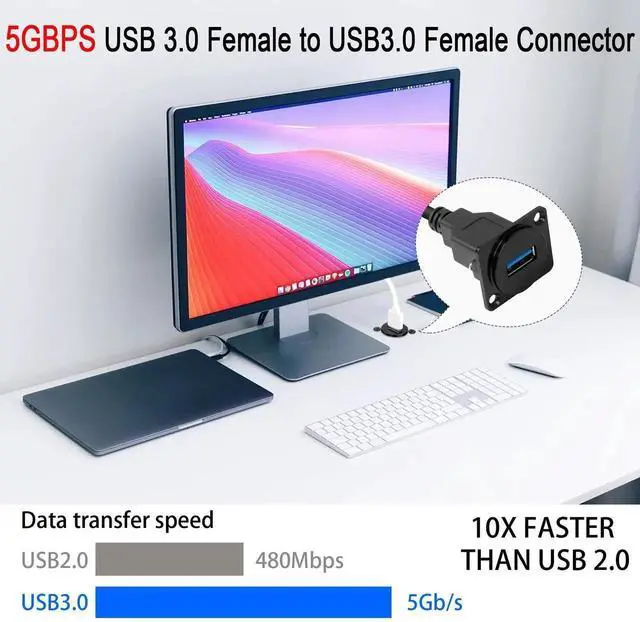 [Extending USB3.0 ports] USB3.0 panel mount data connector, provides easy access to the USB3.0 port, extending it to where you want it.