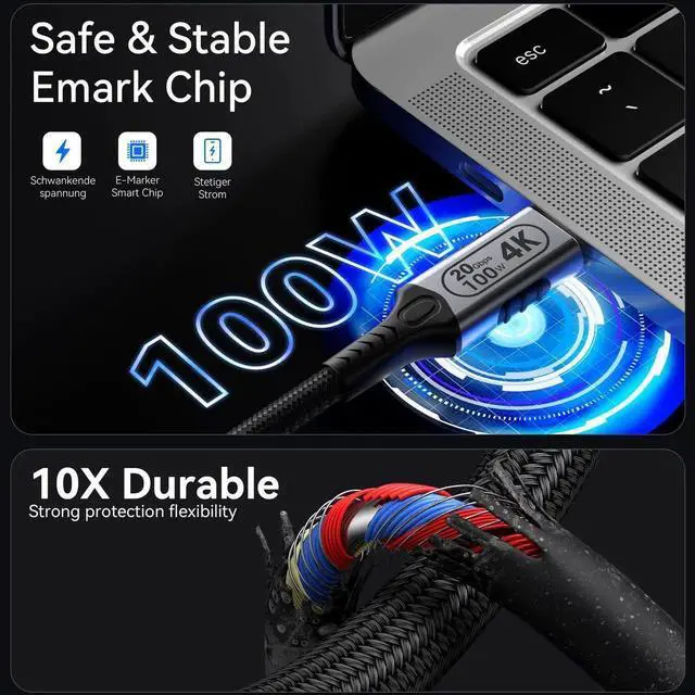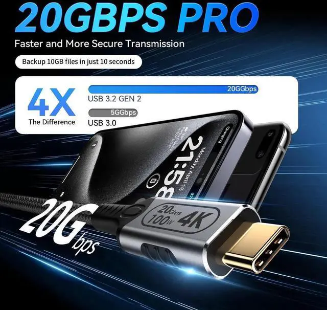The USB C 3.2 Gen 2 cable can achieve an ultra-high-speed synchronization of up to 20Gbps. It can easily connect hard drives and solid-state drives (SSD), enabling the instantaneous transfer of large files. This cable can help you save a significant amount of time during work. Its transmission speed is twice that of USB 3.0/3.1 Gen 1, providing you with an efficient data transfer experience. It is an ideal choice for a USB 3.2 cable, which can quickly meet your work and data processing needs, greatly facilitating and enhancing efficiency.