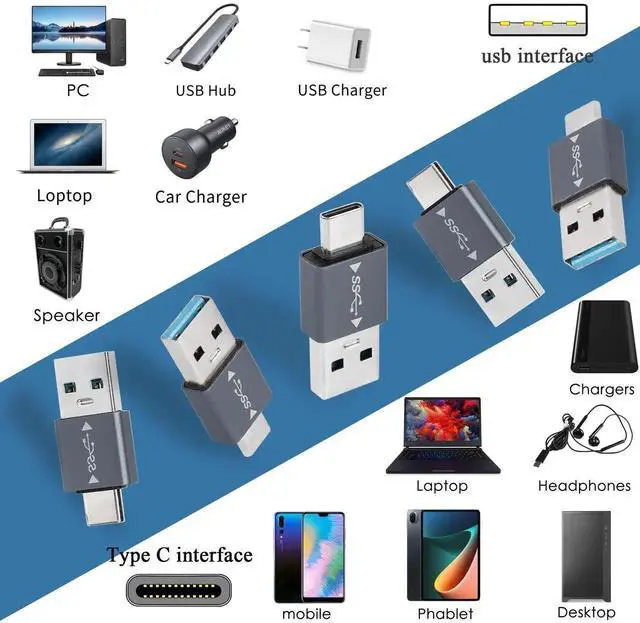 [USB A to USB C Adapter]Connect USB 3.1 or USB 3.0 devices to USB C port devices, such as mobile phones, laptops, tablets, portable hard drives, chargers, etc.