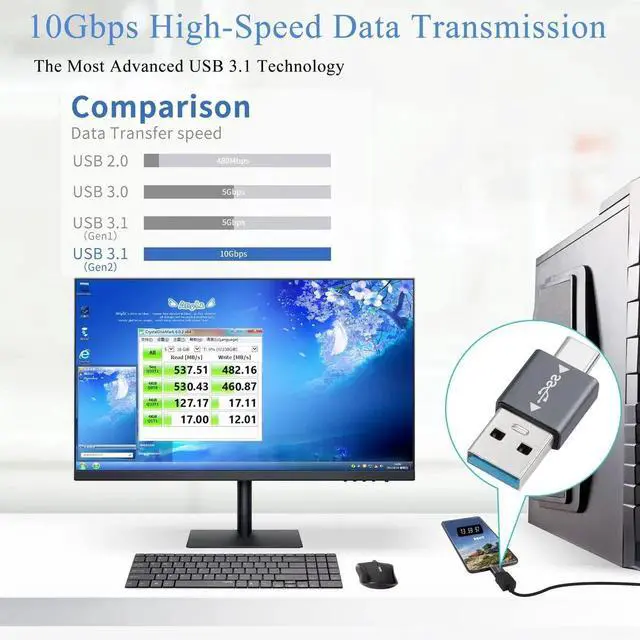 [Compatibility]Type C male to USB A male connector, compatible with devices with USB 3.1 port for data transfer and fast charging. Backward compatible with USB3.0/2.0/1.0.