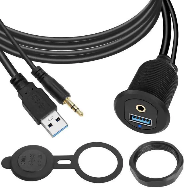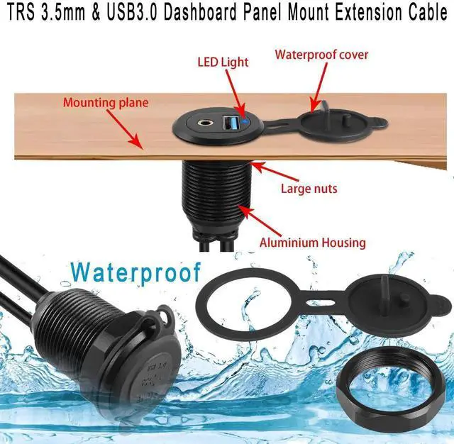 [Usage]USB3.0 & 3.5mm Audio Panel Mount Automotive Waterproof cable. Ideal for simultaneously extending the USB3.0 and 3.5mm audio ports of dashboards or electronic devices in cars, trucks, motorbikes, boats, yachts, etc. Also available for DIY installation in your den, bedroom and desktop.