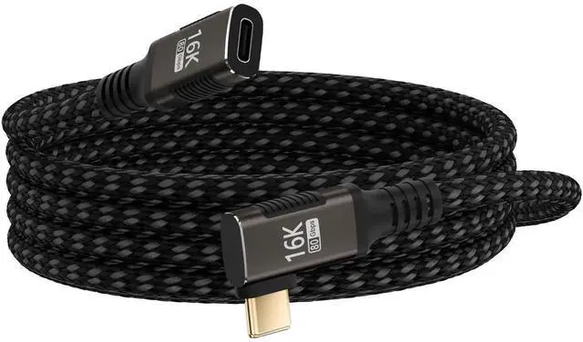 [Ultra-Stable Coaxial Structure & 16K/8K HD Visuals] This usb-c extension right angle cable combines military-grade coaxial stability with flexibility, plus 24K gold-plated contacts and triple-shielded cabling to block interference and ensure zero signal loss. As a reliable usb c extension cable, it supports single 16K@60Hz or single 8K@120Hz or dual 8K@60Hz output, delivering studio-grade color accuracy for professional video editing, 3D rendering, and immersive gaming.