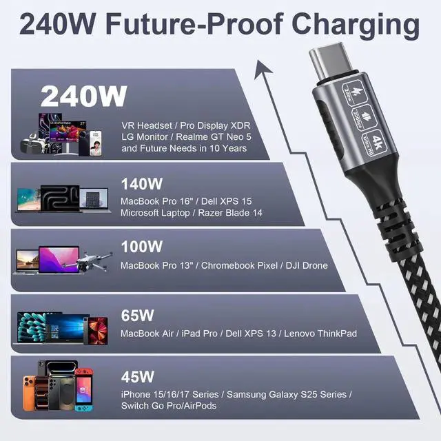 Universal Compatibility: Works flawlessly with a wide range of USB-C devices. Efficiently charge and sync laptops (up to 240W), phones, tablets, Steam Deck, and Nintendo Switch, making it the only cable you need.