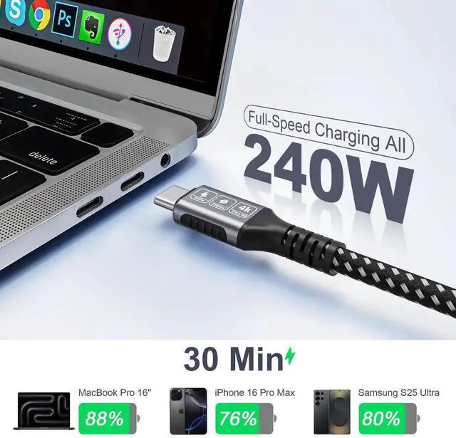 240W Super Fast Charging: Embrace the future of charging with support for the latest USB PD 3.1 standard (up to 48V/5A). When paired with a compatible charger, it delivers the maximum power your device can handle for incredibly fast charging.