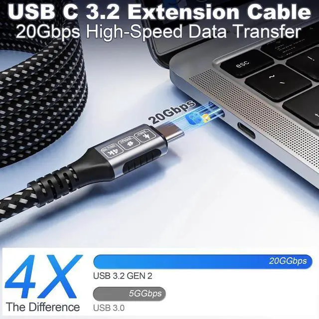 Blazing 20Gbps Data Transfer: Equipped with USB 3.2 Gen 2 technology, this cable achieves speeds up to 20Gbps. Transfer large files, photos, and videos in secondstwice as fast as USB 3.0/3.1 Gen 1dramatically boosting your workflow efficiency.