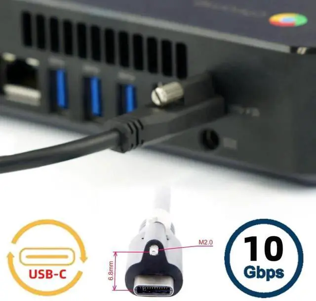The USB Type-C Cable With Single Locking Screw features a USB-C male connector with one single M2 screw,Cable screw to connector distance is 6.8mm, Type C connector is the new design for USB 3.1,Reversible Design for Type C connector.