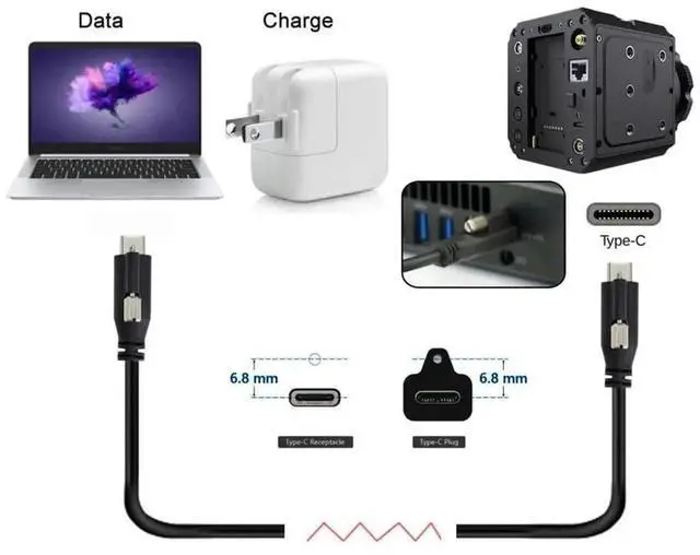 The Type-C USB Locking Cables are USB-C Vision Standard compliant and tested to be fully compatible with industrial USB 3.0 Machine Vision cameras.Single screw allows for secure mating in industrial applications.