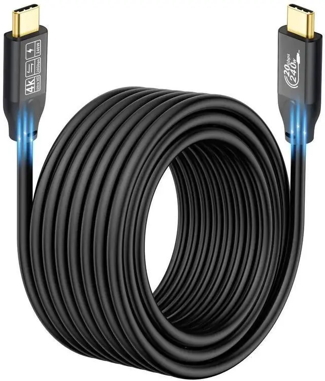 JAENFONG USB C 3.2 Gen 2 Cable, 16.5FT 20Gbps Type C 4K@60Hz UHD Video 5A/240W PD3.1 Fast Charge Compatible with Thunderbolt 3/4 for Phone 15Pro MacBook Monitor 5M