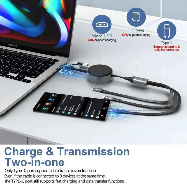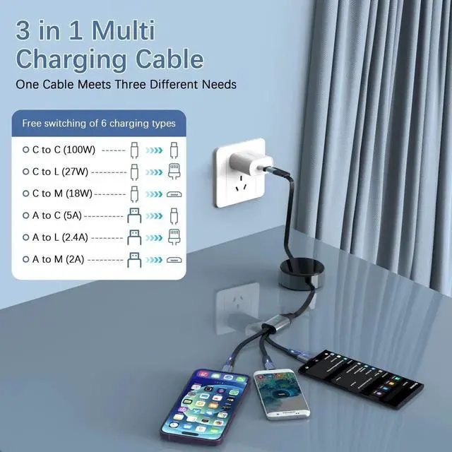 100W Retractable Multi Charging Cable 6A 3in2 MFi Certified iPhone 15 16 Car Charger Cord Retractable Cell Phone Charger with Type C/Micro USB/Lightning for Galaxy iPhone Android Pad MacBook 4FT