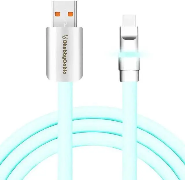 chubbycable Neon Chubby - Fast Charge Cable with Smart Light RGB Color Gradual Light Up LED USB Charging Cable, Light Blue, USB-A to Type-C, 8.5 FT