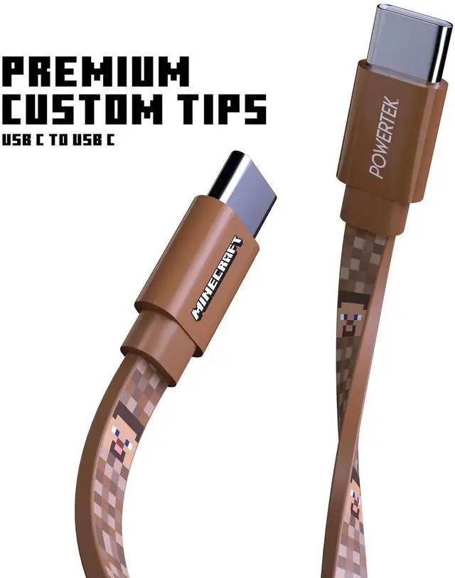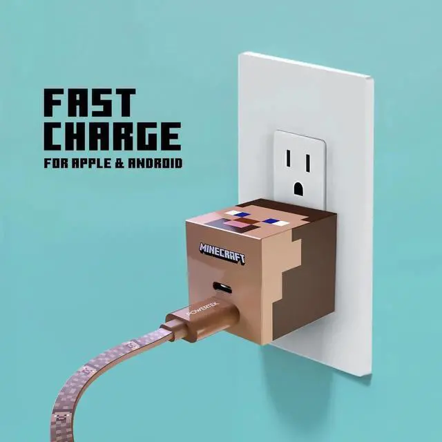 LIQUIPEL Powertek Minecraft Charging Bundle USB-C to C Cable and Wall Charger (Steve)