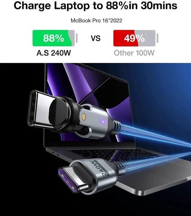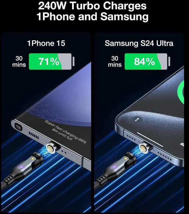 A. S Gen3 USBC Magnetic Charging Cable 240W (2Pack, 3.3 ft/6ft), 9Pin USB C to USB C Magnet Charger Cable/360&180 Rotation Magnetic Phone Charger Data Cable for Phone 15/Samsung/M-Book/Pad Series