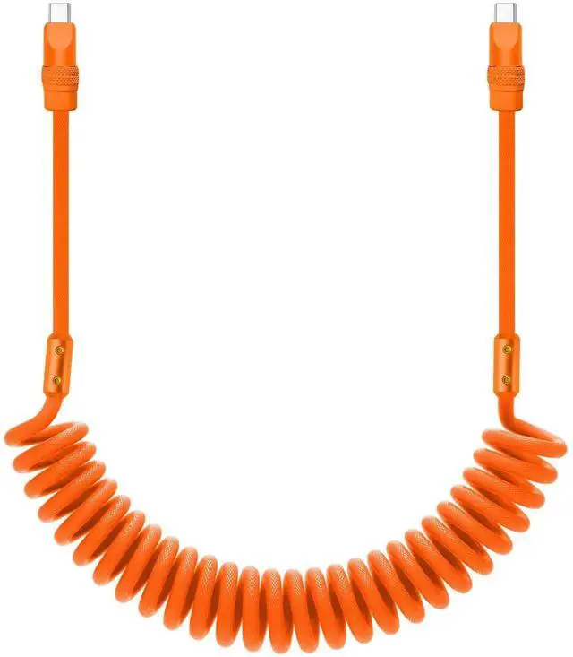 chubbycable Curly Chubby 240W Coiled USB C Cable Retractable Fast Charging Cable for Car Charger Cord Compatible with iPhone 17-15 Series, Orange, Type-C to Type-C, 2.29FT - 3.6FT