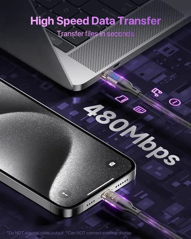 VisionSync 240W USB C to USB C Cable with LED Display Compatible with 140W 100W Fast Charging for MacBook Pro, lPhone 16/15/15Pro/15ProMax, Galaxy S23+/S23Ultra/S22, 6.6 ft 2Pack, Black, Transparent Shell