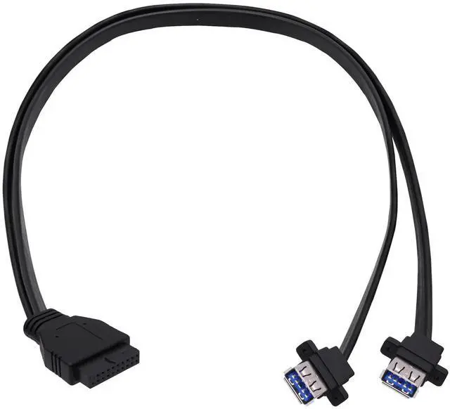 USB 3.0 Front Panel Cable, Motherboard 19/20pin Header Splitter to 2 USB Female Adapter Connector Extension Cable Wire Cord for PC DIY-50CM/1.64FT