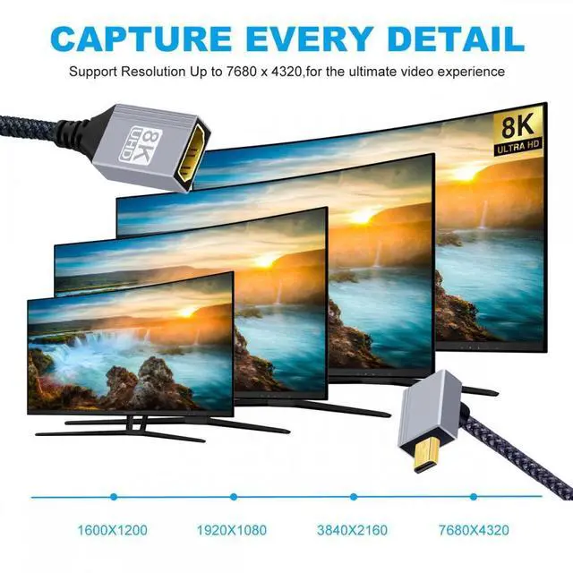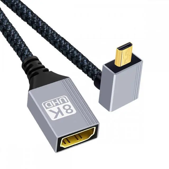 8K Type-D Micro HDMI 2.1 Male Angled 90 Degree to HDMI Female Extension HDTV Cable for DV Camera Laptop Portable Monitor