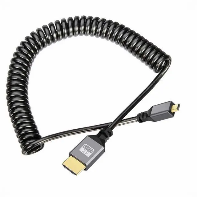 Micro HDMI Male to HDMI Male 4K 60hz Stretch Coiled Cable Straight Connector for HDTV Computer Laptop Monitor