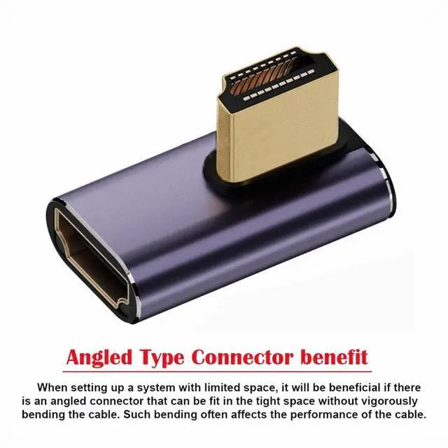 The HDMI angled type Allowing you to connect it to a female port, even if space around the port is limited.