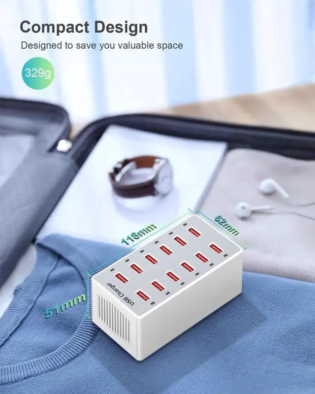 USB Charging Hub Has Portable Size: Mini sized usb charger station can save you valuable desk space while keeping 12 devices in one place for added organization, a good USB wall charger