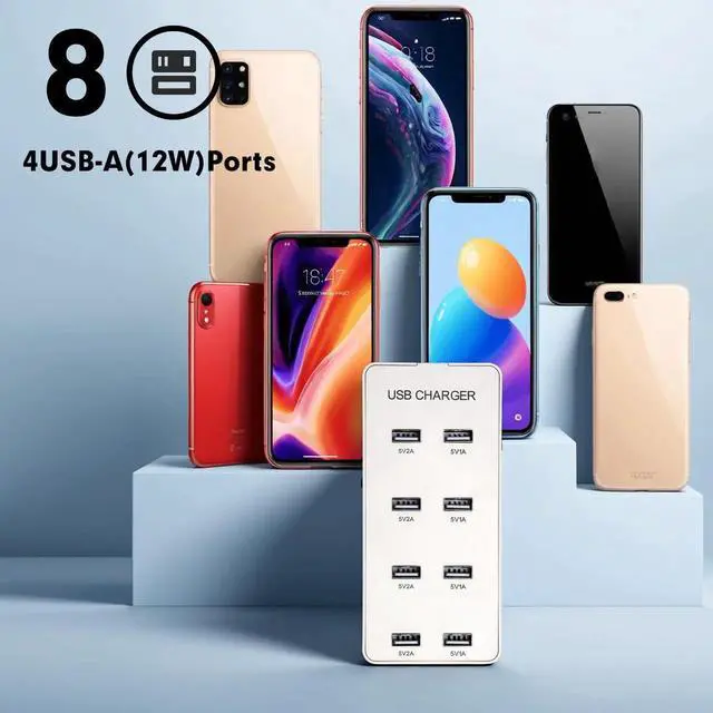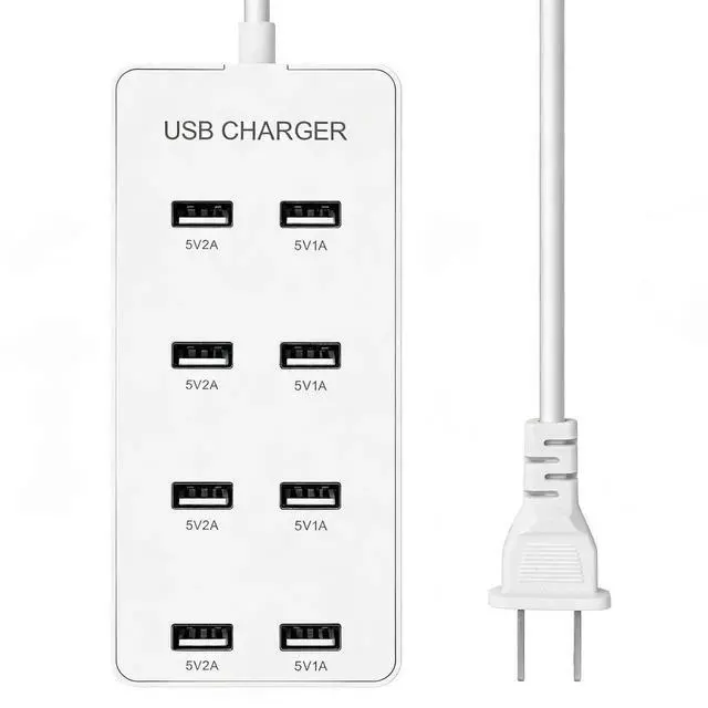 USB Wall Charger USB Charging Station for Multiple Devices 8-Ports Power Hub Strip Smart Charger Block Compatible with iPhone, Galaxy, iPad Tablet, and Other DevicesWhite