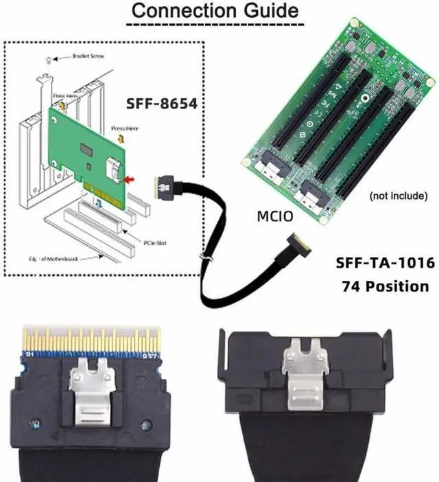 Easy to use: Simply plug in the SFF-8654 74 Pin end of the cable into your device and the MCIO end into your external hard drive, and you're ready to go.