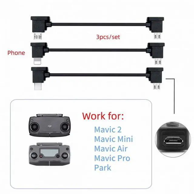 • 3pcs/set Remote Controller Data Cable Type-C Micro 8P to Micro USB for Mavic Pro Platinum Mavic Park RC Accessories