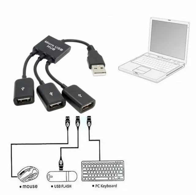 USB 2.0 to 3 Ports Hub Cable Bus Power 1 to 3 for Laptop Notebook PC Mouse Disk Printer