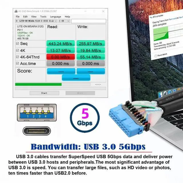 Compliant with USB Base Specification 3.0, Output USB3.0 interface and Type-C interface of PC back panel.