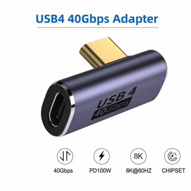 40Gbps USB4 Type-C Male to Female Low Profile Right Angled 100W Power Data 8K Video Adapter